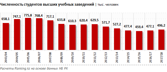 В 2017-2018 учебном году число студентов составляло 496,2 тысяч человек, что на 4% больше, чем в прошлом учебном году.