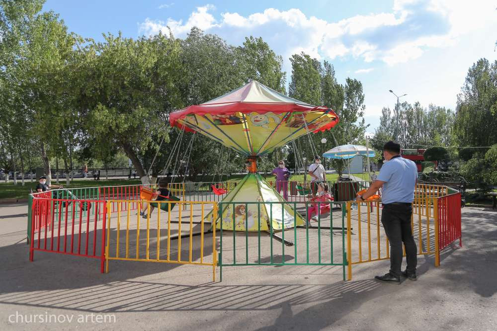 Местные аттракционы закрыты. Но нашлись и те, которые работают. Родители занимают очередь на карусели, не беспокоясь о здоровье своих же детей.