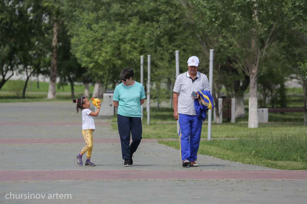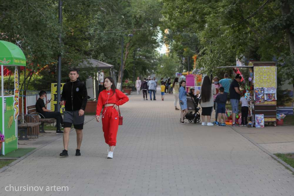 В это время в центральном парке Нур-Султана дети купаются в фонтанах. Взрослые отдыхают на набережной, кормя местных лебедей. Другие наслаждаются природой.