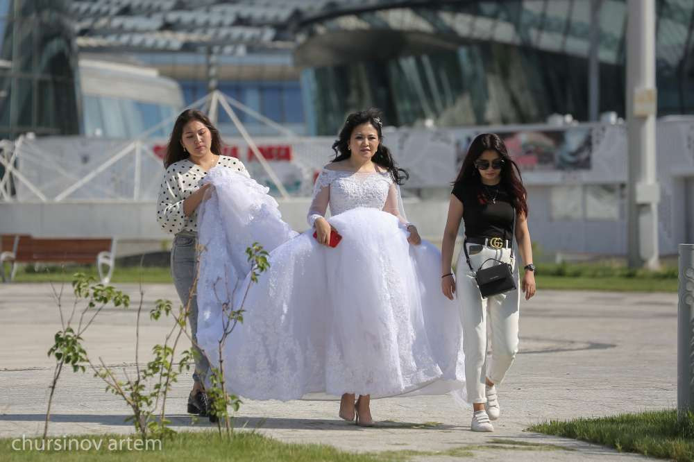 Некоторые вовсе устроили свадебную фотосессию на территории ЭКСПО. Также большое количество детей замечено на детских площадках. Здесь дети и их родители совсем незнакомы с карантинными мерами.