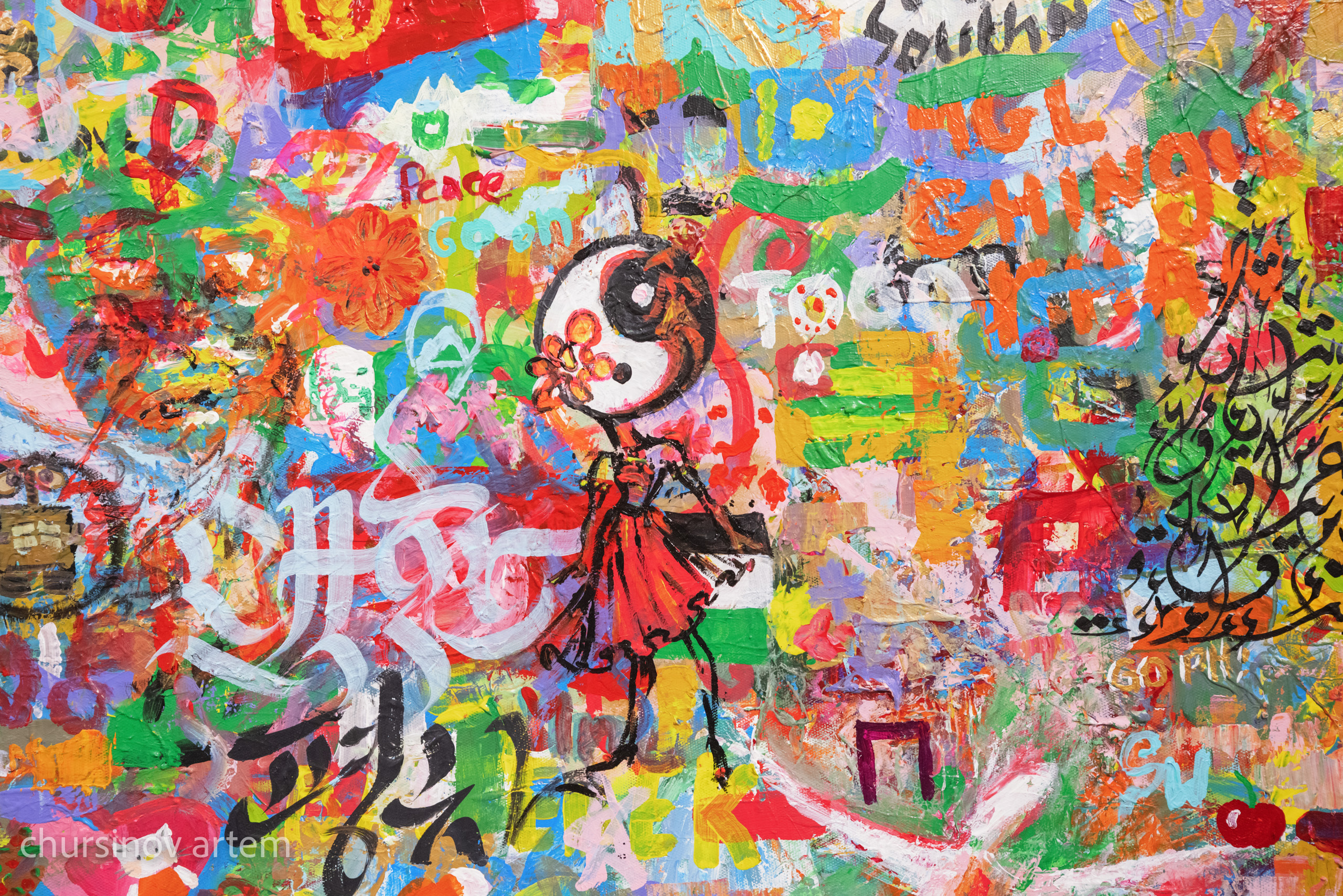 Каждый штрих на картине - это энергетический след от разных стран, считает Серик Сапиев, казахстанский боксёр, который также оставил свою надпись на холсте.