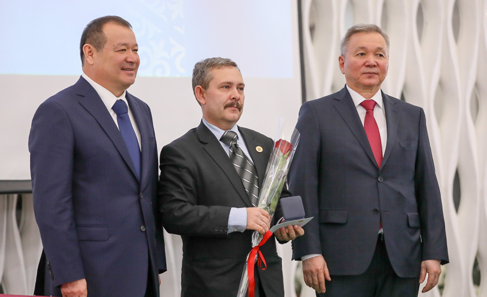 Нагрудным знаком "Жер койнауынын курметти барлаушысы" награждены вице-президент компании "Центргеолсъёмка" Валерий Тапаев, главный геофизик комплексной партии геологии нацкомпании "Казгеология" Сергей Беляков. Нагрудным знаком "Жер койнауын барлаудын уздиги" награждён геолог нацкомпании "Казгеология" Асет Бекетов. Медаль "Енбек ардагери" получили геофизик "Казгеологии" Барлыбай Смагулов и старший инженер геоинформционного обеспечения РЦГИ "Казгеоинформ" Бибисара Бегленова.