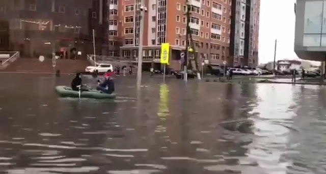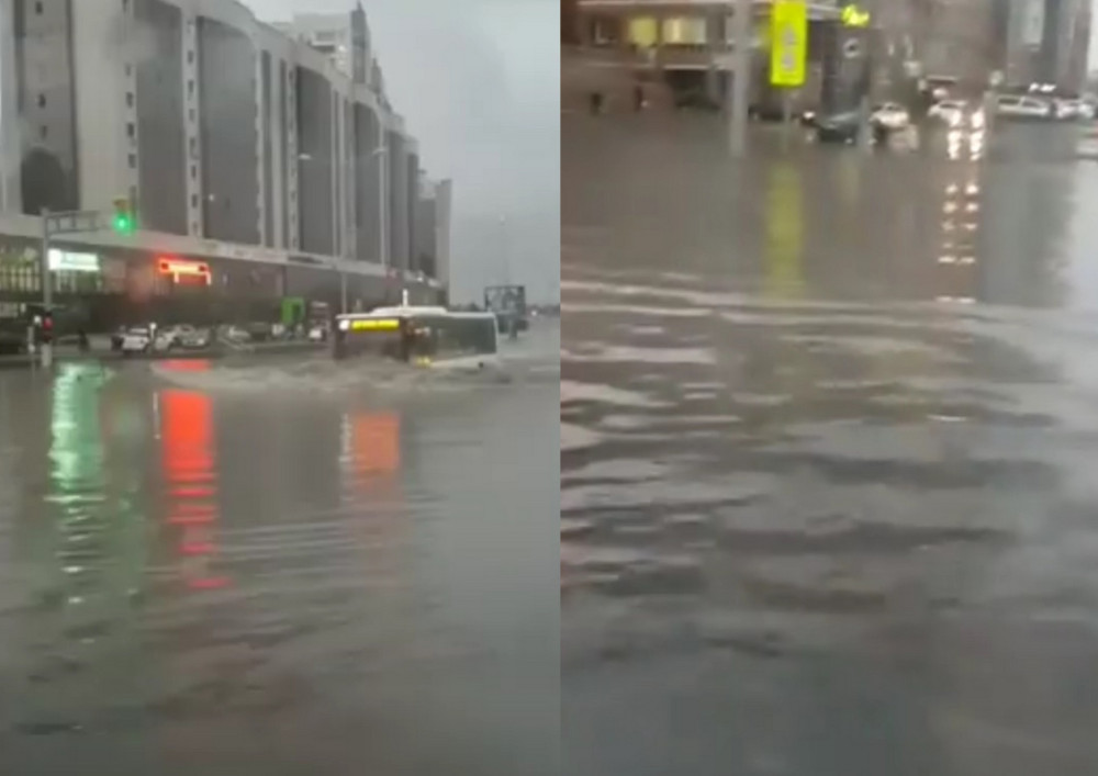 Вместе с тем, люди в социальных сетях выкладывали фото и видео плывущих в лодке по улицам столицы, а также автобусы, пробирающиеся сквозь лужи.