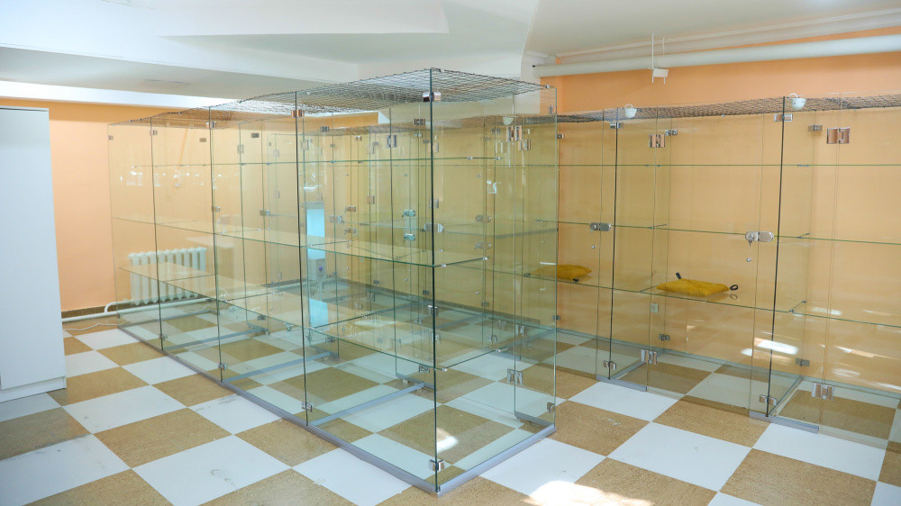 "Всё сделано из закаленного стекла. Всё для гигиены. Животные друг с другом не контактируют. Есть также бактерицидный облучатель, который можно включать в присутствии животных, людей. Также есть вытяжки. Каждый номер мы обрабатываем специальным средством. Уборка номера два раза в день. Питание согласно рациону животного по рекомендациям хозяев", - продолжает Ошманов.
