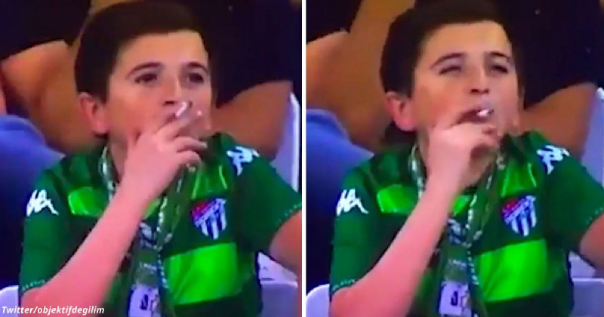 В трансляцию попали два юных болельщика "Бурсаспора", один из которых смачно затягивался сигаретой.