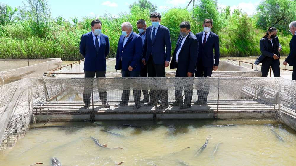 В ходе поездки глава Правительства ознакомился с деятельностью рыбоводного хозяйства Kaspi Bekiresi Limited, выращивающего осетровые виды рыбы. В краткосрочный период объем производства предприятия планируется довести до 30 тонн мяса рыбы и 3 тонн икры в год.