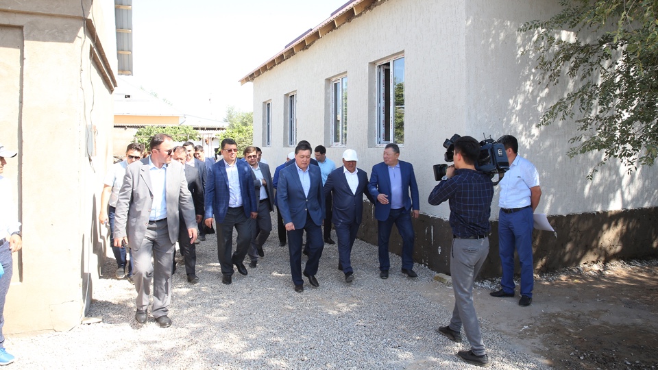 Аскар Мамин посетил стадион, больницу, школу, где ознакомился с ходом ремонтных работ.