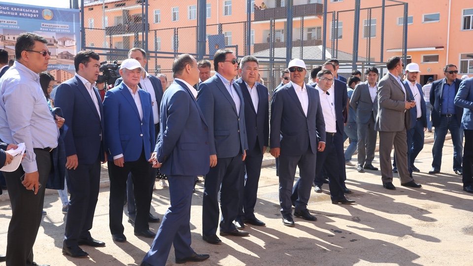 Аскар Мамин также осмотрел ход строительства нового микрорайона, состоящего из 50 жилых двухквартирных коттеджей для 100 семей, дома которых были полностью разрушены.