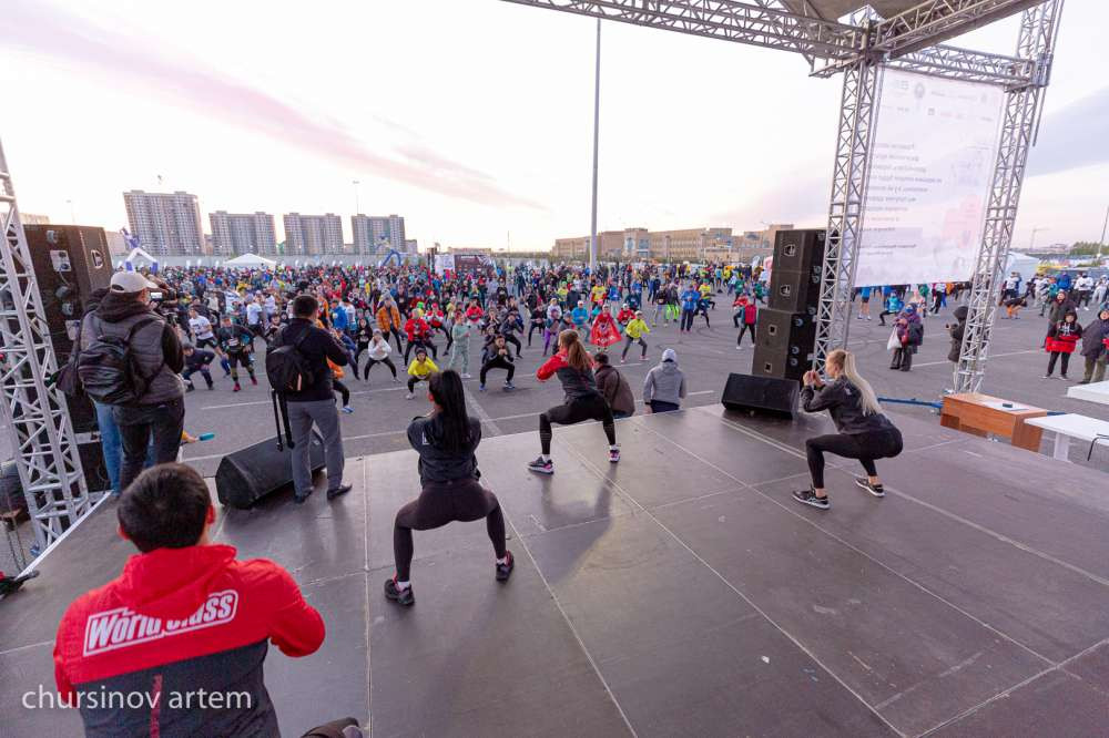 Участников запускали по системе Ashyq. Подготовка к забегу началась с разминки.