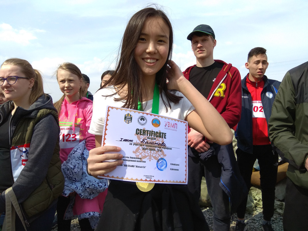 Победителей плогинга наградили медалями. Лучшей в личном зачёте стала 16-летняя ученица "Назарбаев интеллектуальной школы" Кундыз Булатова, которая меньше чем за час собрала семь больших мешков с бутылками и банками, преодолев дистанцию в пять километров по берегу реки.