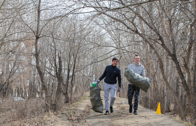 По словам менеджера областного штаба "Жасыл Ел" Романа Краснощекова, сегодня на Усолке стало на полтонны мусора меньше.