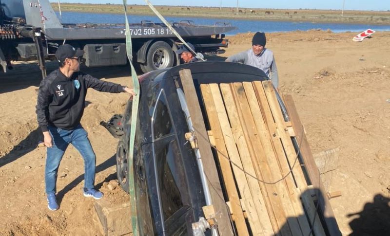 Внедорожник угодил в яму на трассе в Атырауской области, передаёт BaigeNews.kz со ссылкой на "Ак Жайык".