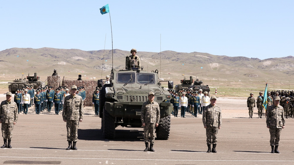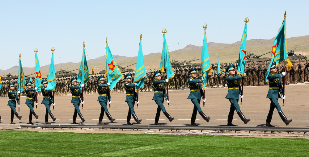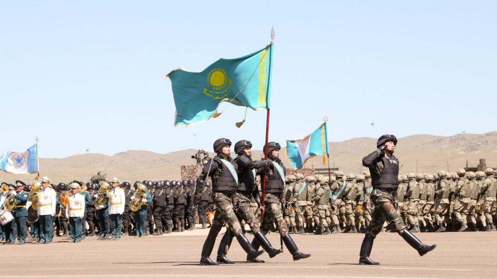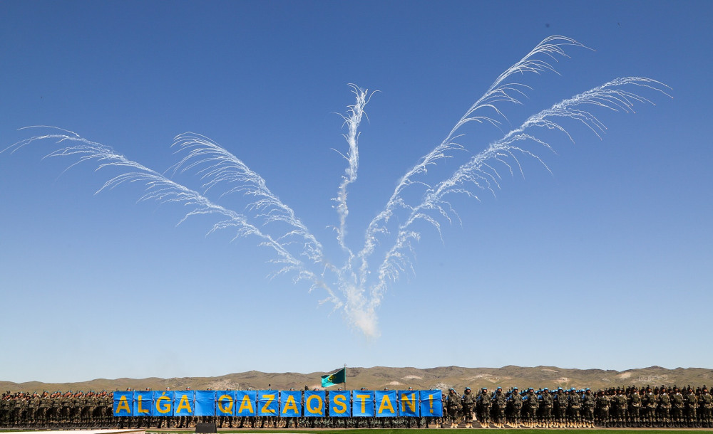Это второй по счёту боевой парад, проводимый в Казахстане. Первый состоялся пять лет назад на полигоне "Гвардейский". За действиями наблюдал Президент страны Нурсултан Назарбаев. Руководил парадом главнокомандующий Сухопутными войсками Вооружённых сил РК, генерал-майор Мурат Бектанов.