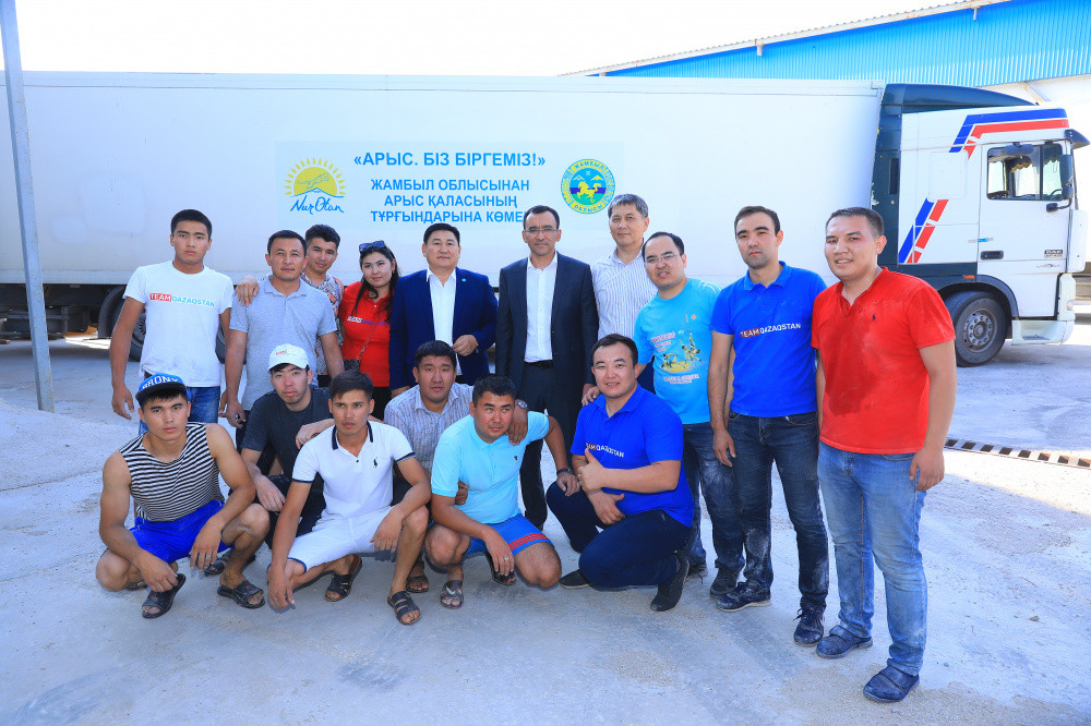 Буквально в первые часы после происшествия акция помощи пострадавшим, организованная партией "Nur Otan", приняла общенациональный характер. На базе областных и ряда городских филиалов партии созданы 18 центров сбора гуманитарной помощи. Уже в первый день Карагандинский областной филиал партии направил 10 тонн гуманитарной помощи в г.Арысь. 25 июня 2019 года 9 регионов - Атырауский, Актюбинский, Западно-Казахстанский, Жамбылский, Карагандинский, Кызылординский, Северо-Казахстанский областные филиалы партии, а также филиалы г.г. Нур-Султан, Алматы направили автокараваны с гуманитарной помощью пострадавшим жителям г. Арысь в общем объеме более 340 тонн.