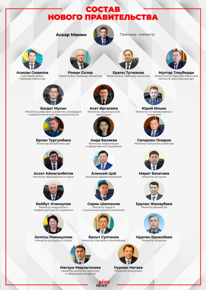 Президент Касым-Жомарт Токаев назначил членов Правительства Казахстана, передает BaigeNews.kz со ссылкой на сайт Акорды.