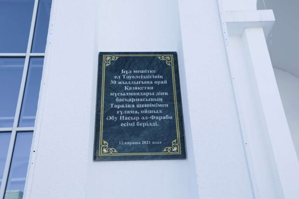 Сегодня была официально снята табличка с прежним названием мечети, а на ее месте установлена табличка с именем Абу Насыра аль-Фараби.