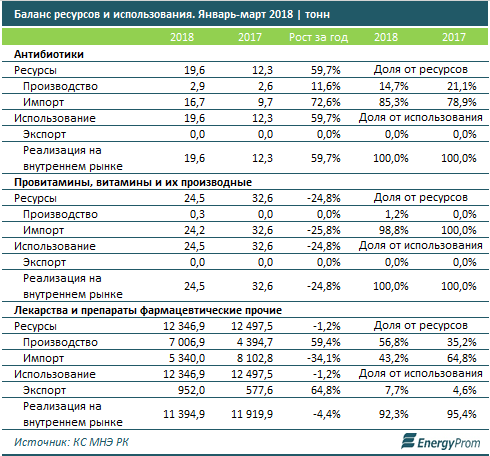 В то же время, рынок антибиотиков всё ещё далёк от самообеспечения - спрос перекрыт импортом на 85,3%. Более того, витамины в РК практически не производятся, фармацевтические препараты этой группы на отечественном рынке - исключительно привозные.