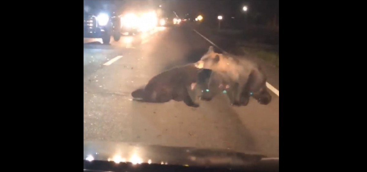 На записи видно, как медведица и двое медвежат оттащили сбитого малыша на обочину. Позже на место инцидента прибыли сотрудники департамента охраны дикой природы. Местным СМИ они сообщили, что медвежонок не пережил автонаезда — мертвое животное нашли в кустах.