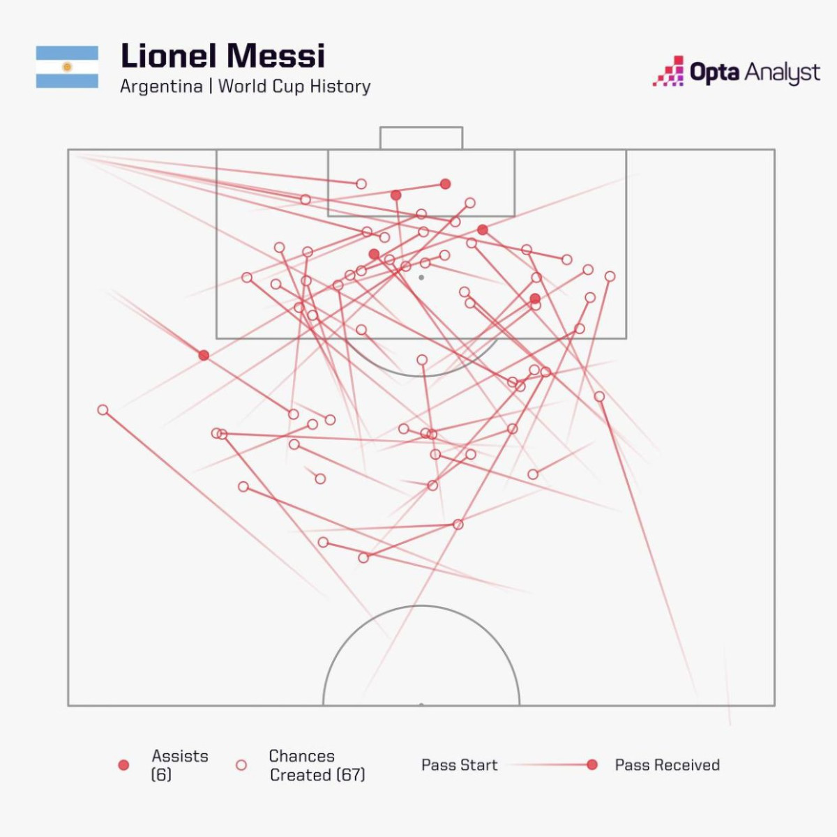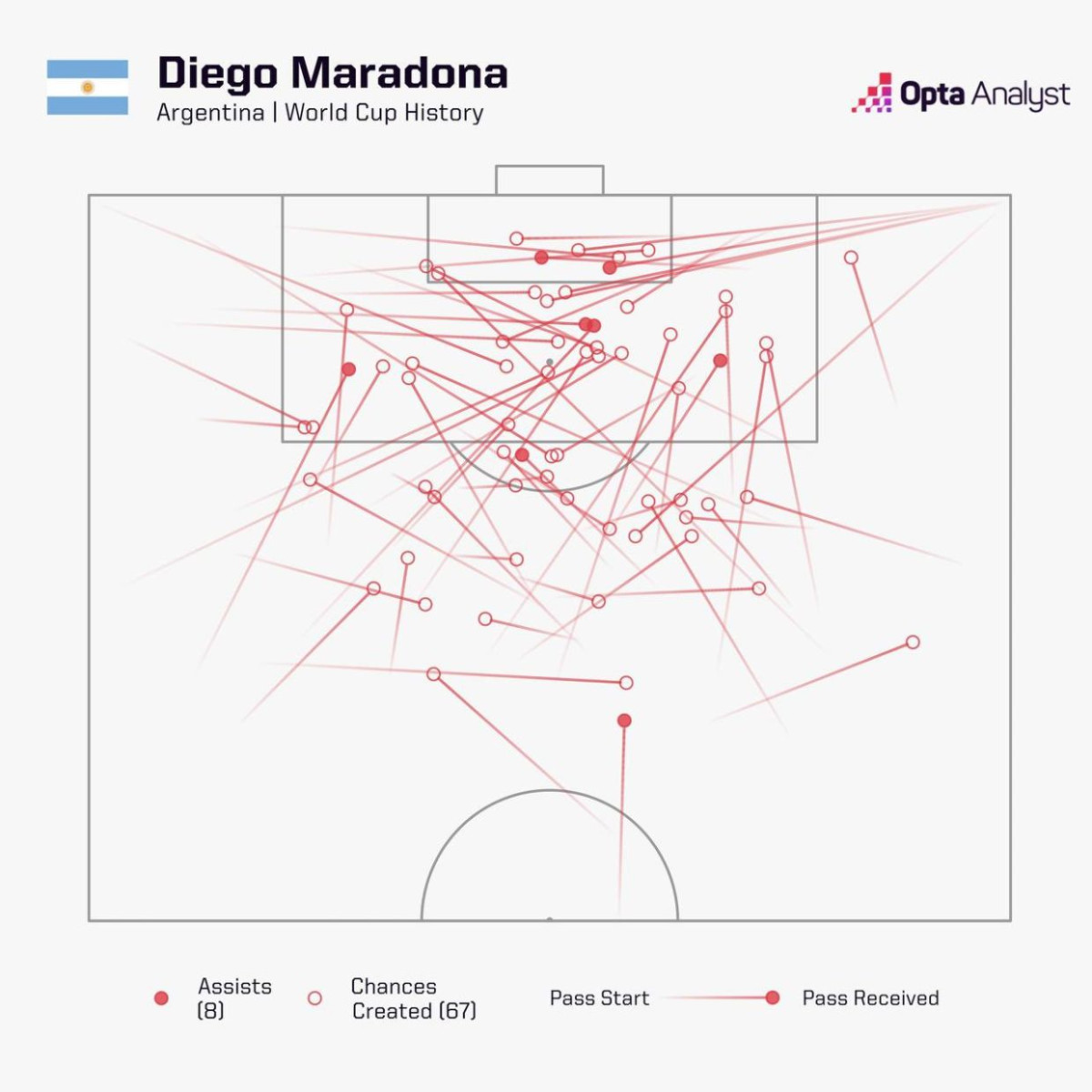 По данным статистического портала Opta Sports, оба футболиста сумели 67 раз вывести партнёров на удачную позицию для удара. При этом у Марадоны на счету восемь результативных передач, а у Месси их только шесть.