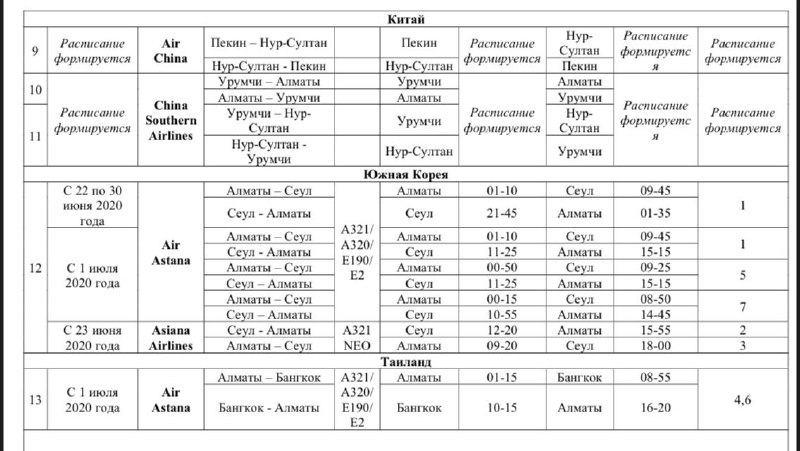 Важно отметить, что в связи с ограничительными мерами со стороны Китайской Народной Республики, расписание казахстанских и иностранных авиаперевозчиков находится на стадии рассмотрения.