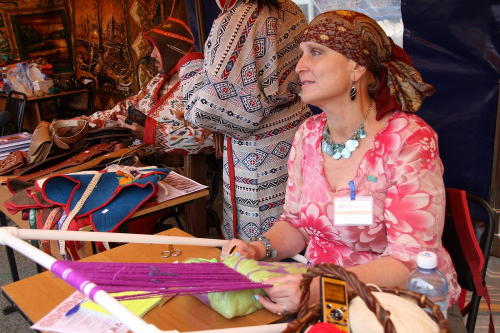 Член Всемирной ассоциации казахов, археолог, реставратор, востоковед и заведующая научно-исследовательской лабораторией YMAI в Петропавловске Татьяна Крупа наглядно показала гостям фестиваля древнюю технологию изготовления длинноворсовых ковров - коцев.