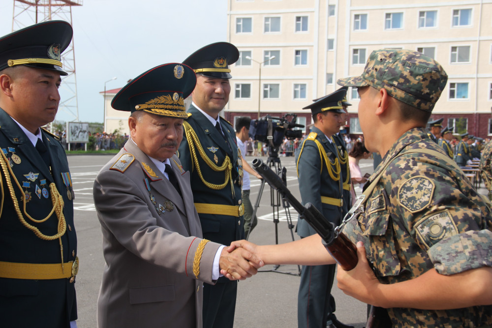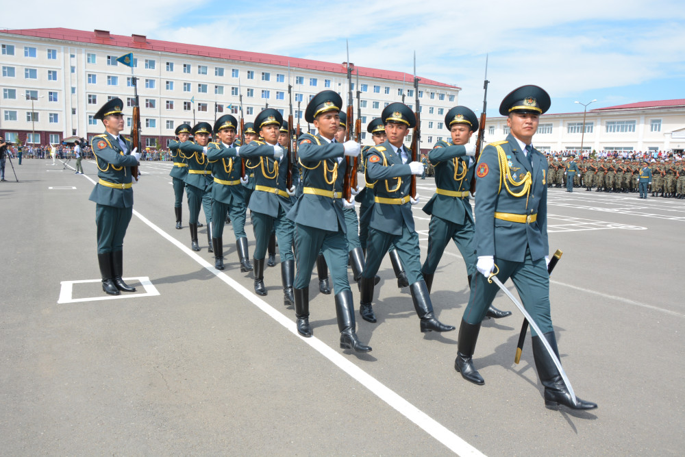 Близкие, которые пришли поддержать своих сыновей и братьев в столь знаменательный день исполнили Государственный гимн вместе с солдатами. Молодых воинов поздравили с принятием присяги заместитель Главнокомандующего Национальной гвардии генерал-майор Мухометкали Сатов, ветераны войск правопорядка Калиакпар Токушев и Даулет Салханов, командир воинской части 5573 полковник Сакентай Шекарбеков.