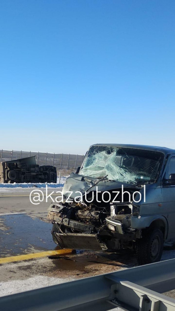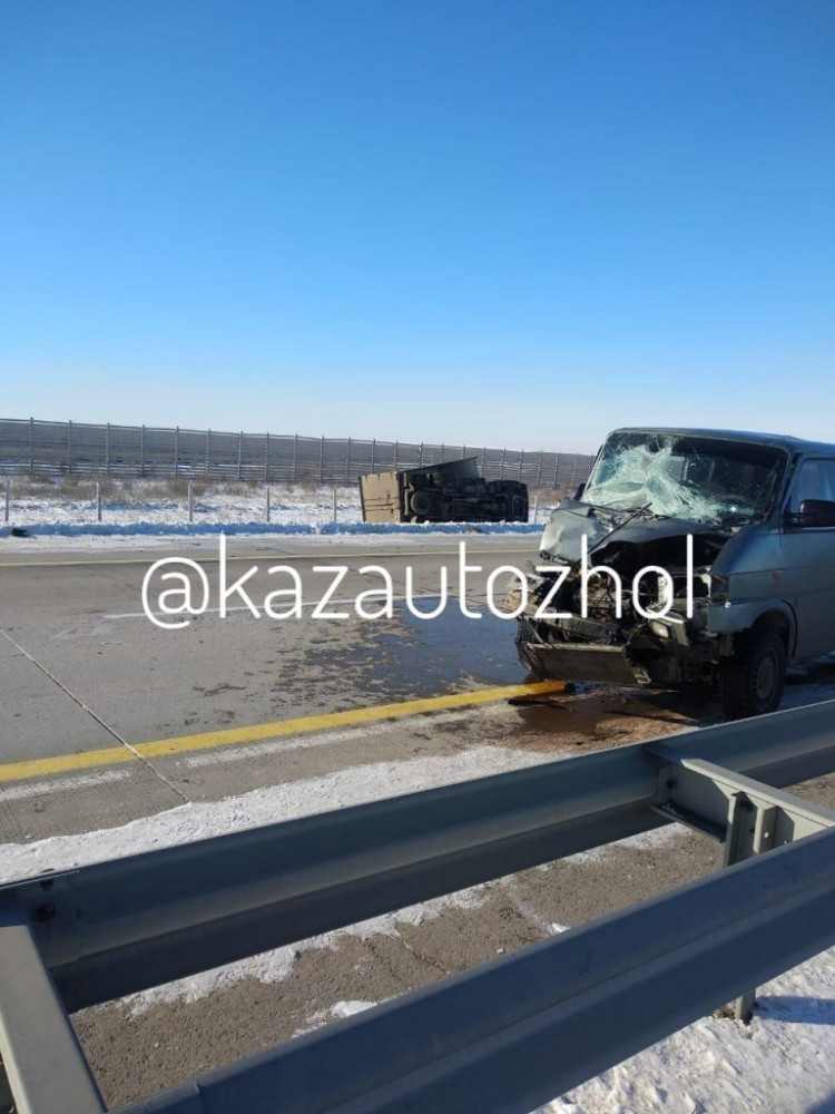 Сообщается, что ДТП произошло в обед 15 ноября 2019 года, около Аршалинского района. Двигаясь по направлению в город Темиртау водитель микроавтобуса Volkswagen на большой скорости догнал и врезался в грузовик Hyundai. От удара автомобили отбросило в разные в стороны.