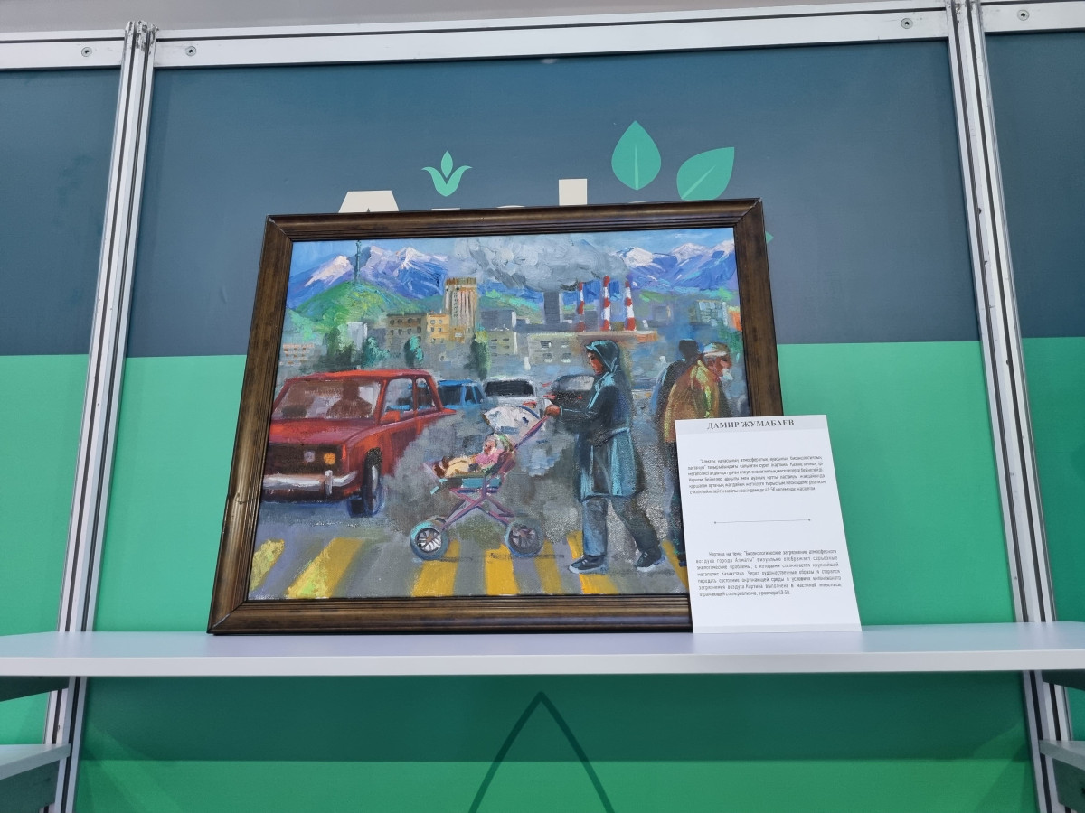 Дамир Жумабаев нарисовал картину в масляной живописи в стиле реализма. Через художественные образы школьник постарался передать состояние окружающей среды в условиях интенсивного загрязнения воздуха.