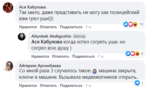 Пока я ждал его, ко мне подошел сотрудник ДПС, представился и спросил о ситуации. Я всё ему рассказал. Он, войдя в моё положение и увидев, что я без шапки и перчаток (они тоже оказались внутри), сначала предложил сесть в его машину, но после моего отказа (т.к. я ни на секунду не хотел кого-либо задерживать и сразу быть на месте, как приедет "медвежатник") он очень мило попытался согреть мои уши своими руками, приговаривая, чтобы я не заболел, а дальше пошёл управлять движением, ведь моя ситуация создавала помехи плотному трафику", – рассказал астанчанин.