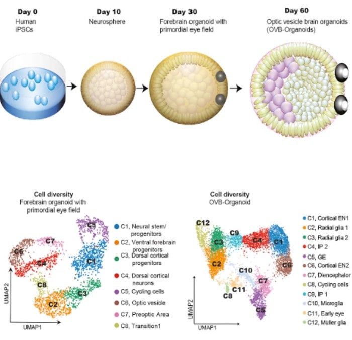 Используя стволовые клетки от четырех доноров, команда сделала 314 органоидов мозга в 16 партиях, причем около 72 процентов из них образовали оптические чашки. Эти структуры начали появляться к 30-дневной отметке и созревали в течение 50 дней, что, по словам команды, аналогично тому, как человеческие эмбрионы развивают сетчатку. Исследование показывает, что техника воспроизводима, хотя дальнейшая работа должна быть сделана, чтобы сохранить их жизнеспособными дольше, чтобы использовать их для изучения.