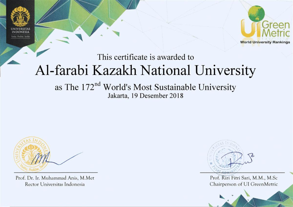"Рейтинг показывает реальную картину развития "зелёных" технологий и экологической политики в высших учебных заведениях и оценивает их по таким критериям, как развитие инфраструктуры, хранение и переработка отходов, рациональное использование воды и энергии, использование экологически чистого транспорта, образовательная и научная деятельность в области экологии, площадь зелёных насаждений в кампусе. Следует отметить, что КазНУ значительно опережает в этом рейтинге другие казахстанские вузы", - говорится в сообщении.