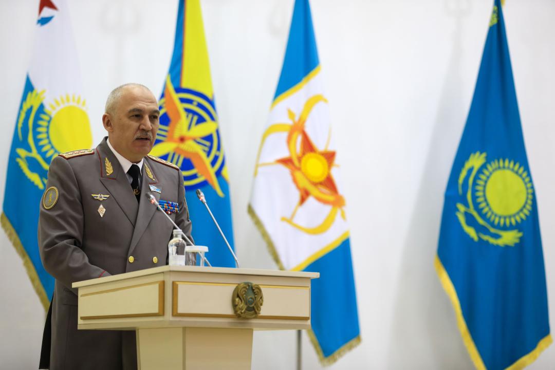 В торжественной обстановке генерал-полковник Руслан Жаксылыков вручил погоны "майора" военнослужащему войсковой части 44841 Марлену Гиззатову и командиру десантно-штурмового батальона войсковой части 18404 Жоламану Ердаулетулы, "капитана" – командиру минометной батареи войсковой части 27943 Думану Абаю и командиру роты войсковой части 75263 Асылбеку Болысбеку.