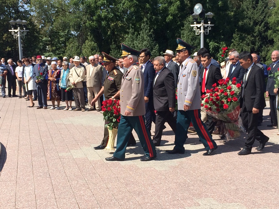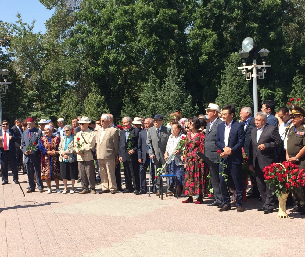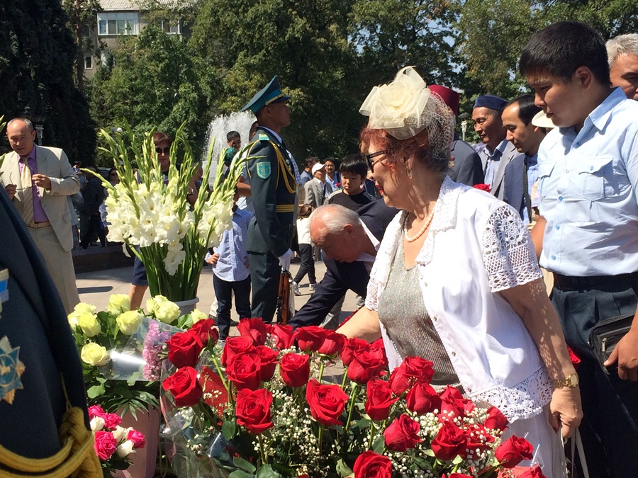 В сквере имени Д. А. Кунаева в день памяти выдающегося деятеля собрались и дети и почетные алматинцы.