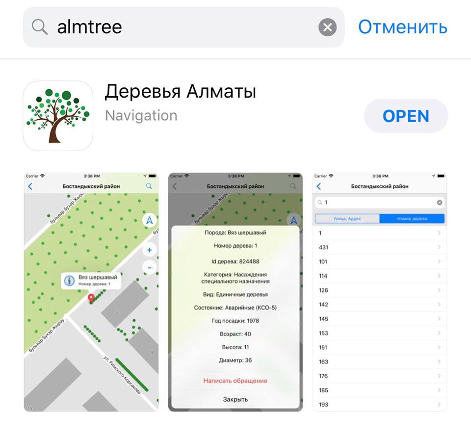 Управлением природных ресурсов и природопользования города Алматы (трансформируется в Управление зеленой экономики) запущено мобильное приложение "Almtree", с помощью которого можно отследить информацию о каждом дереве города, сообщает пресс-служба акимата Южной столицы.