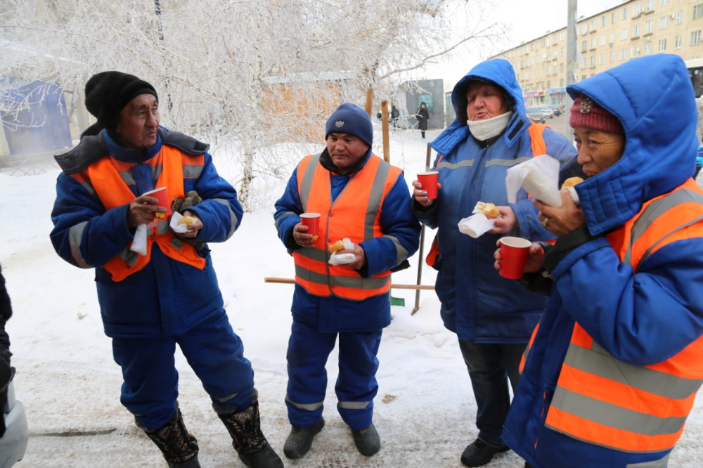 "В прошлом году активисты начали акцию "Кел, шәй ішейік" с целью показать работу дворников и поблагодарить их за тяжелый труд. Когда вся страна отдыхает в праздничные дни, эти люди трудятся с раннего утра и в мороз, и в жару. Позже, вся молодёжь страны присоединилась к акции. Особенно радует, что в таких суровых условиях, как в Астане, Акмолинской, Северо-Казахстанской, Восточно-Казахстанской областях, в морозные дни молодые люди выходят на улицу и помогают другим", - сказал председатель Молодёжного крыла "Жас Отан" Данияр Сундетбаев.