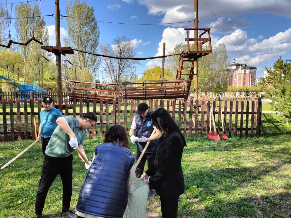 После завершения флешмоба сотрудники полиции провели субботник на территории Центрального парка.