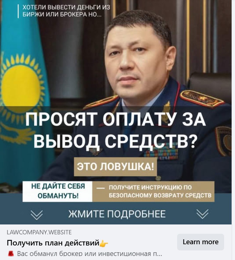 "Хотели вывести деньги из биржи или брокера, но… Просят оплату за вывод средств? Это ловушка. Не дайте себя обмануть. Получите инструкцию по безопасному возврату средств", - гласит текст нового объявления.