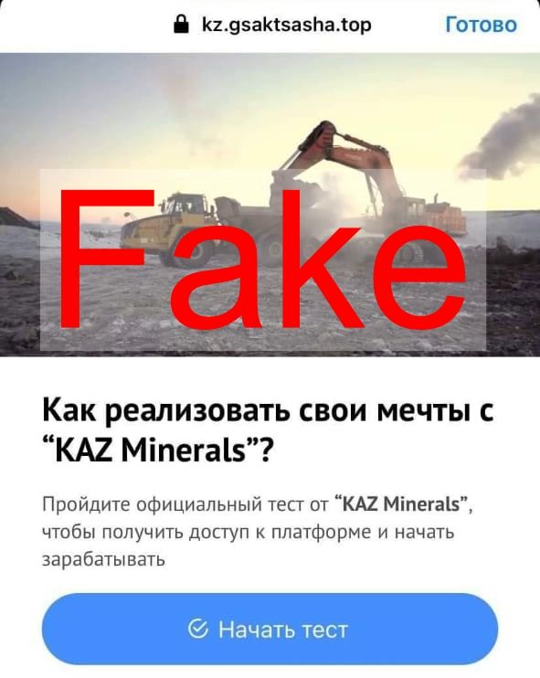 Группа KAZ Minerals предупредила казахстанцев о мошенниках. Используя название, мошенники пытаются завладеть персональными данными и личными сбережениями граждан, передаёт BaigeNews.kz.