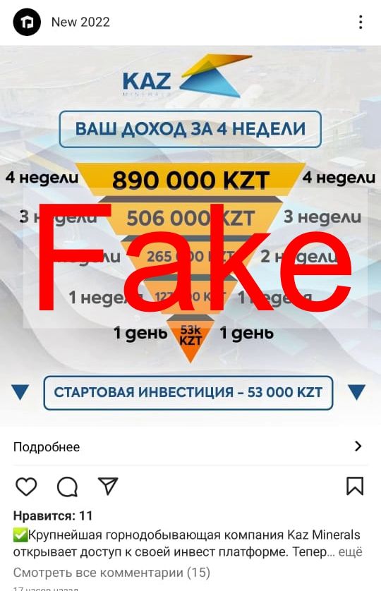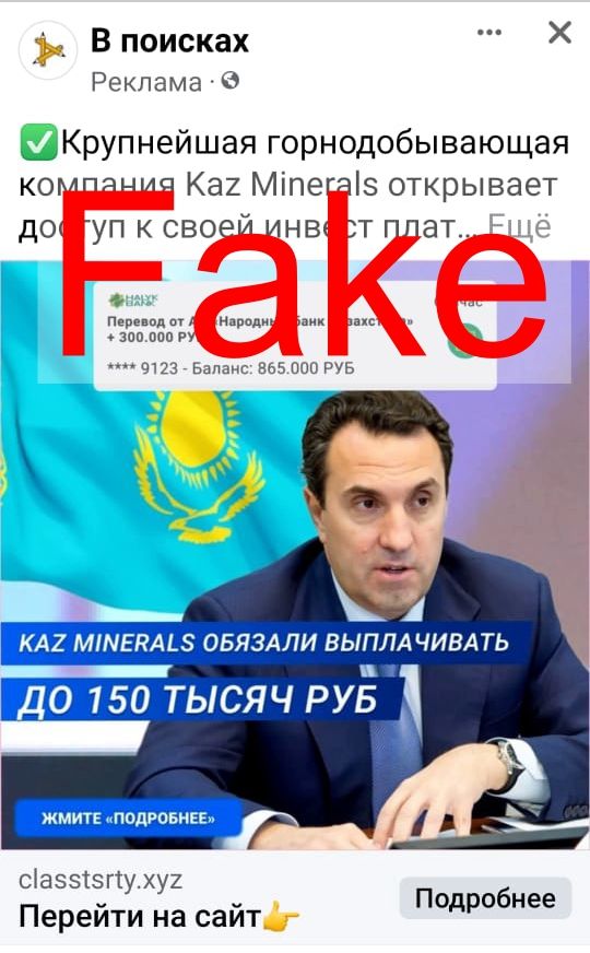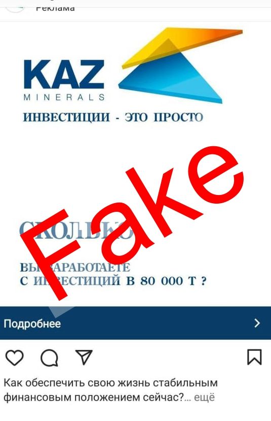 "В последнее время злоумышленники не ограничиваются финансовыми институтами и используют успешные казахстанские бренды из других секторов экономики, в том числе KAZ Minerals, в попытке ввести в заблуждение население. Мы официально заявляем – компания не осуществляет инвестиционных программ для граждан. Не так давно компания ушла с биржи, стала частной, и её акций в свободном обращении нет. Призываем казахстанцев соблюдать бдительность, придерживаться правил информационной безопасности, никому не сообщать свои личные данные, перепроверять сомнительную информацию на официальных ресурсах компании. А самое главное – предостерегать своих близких и знакомых от опрометчивых шагов, сулящих невиданную прибыль", - рассказал руководитель департамента корпоративных связей KAZ Minerals Максут Жапабаев.