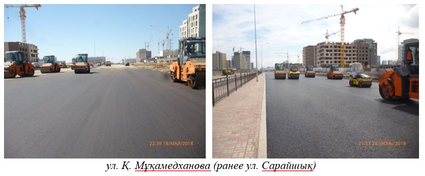 По информации столичного управления транспорта и развития дорожно-транспортной инфраструктуры, в текущем году обеспечен проезд по ул. Қ. Мұқамедханова (ранее ул. Сарайшық) на участке от ул. Ч. Айтматова (ул. Ш. Бейсековой) до пр. Тұран, ведутся работы по благоустройству.