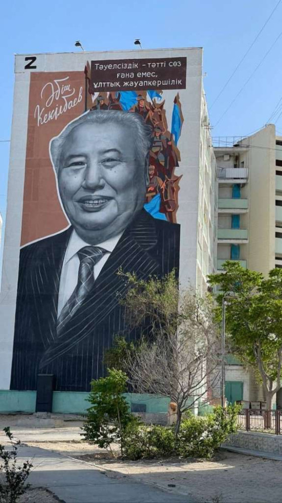 В Актау появился мурал, посвященный известному государственному деятелю Казахстана, писателю Абишу Кекилбаеву, его портрет украсил один из домов в городе, передает BaigeNews.kz.