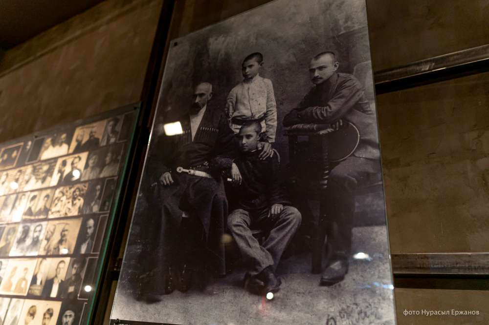 "Из четырех здесь изображенных людей (на снимке ниже — прим. ред.), двое были музыкантами. Они всю Грузию обошли пешком и записали старинные грузинские песнопения, потом издали сборник, по которому сейчас многие поют эти песни. Их двоих расстреляли в 1937 году", — говорит сотрудница музея.