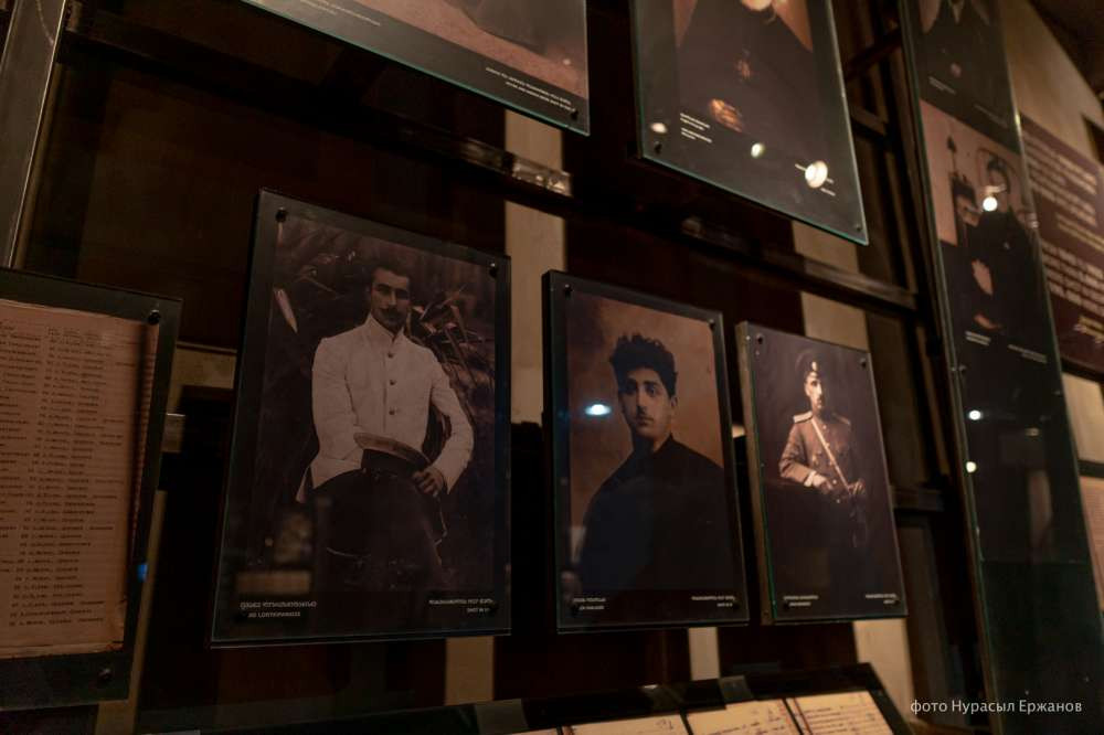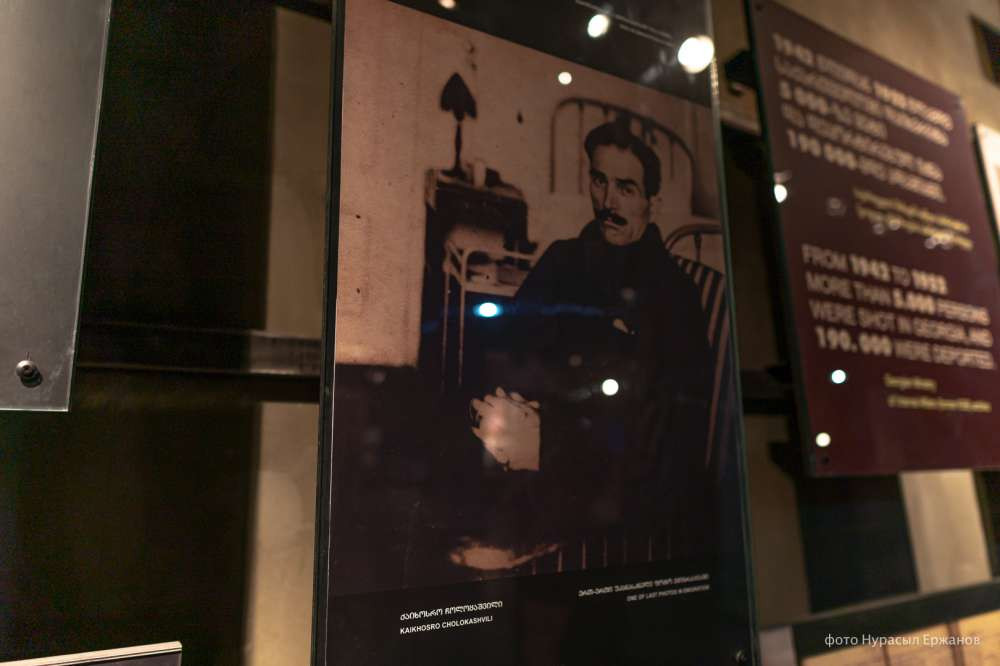 "В самой России эта волна репрессий тяжело проходила, как и у вас в Казахстане. Многих расстреляли, многих сослали, включая жен репрессированных. Здесь у нас изображены представители культуры Грузии. Почти все они были расстреляны. Среди них в нашей экспозиции можно увидеть дирижеров, музыкантов, поэтов, основоположников грузинского театра", — перечисляет экскурсовод.