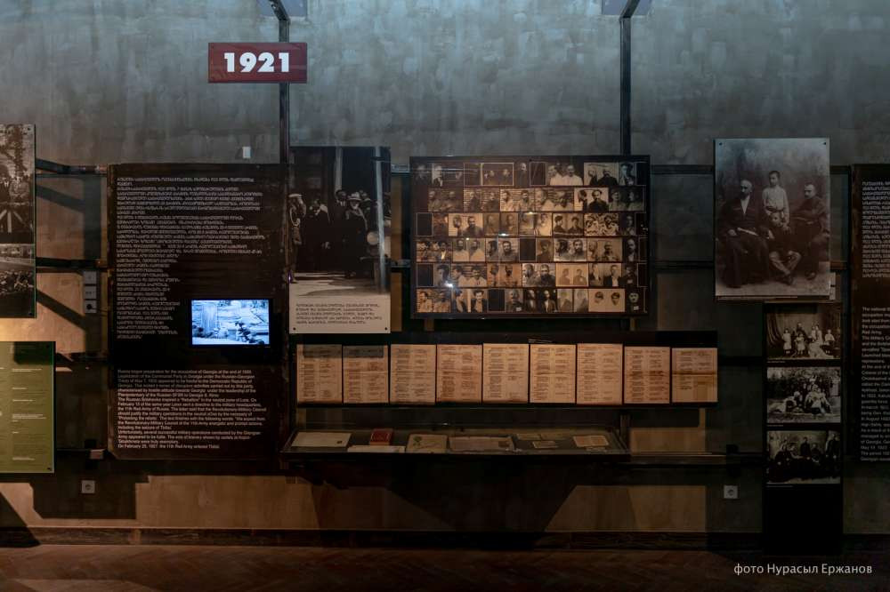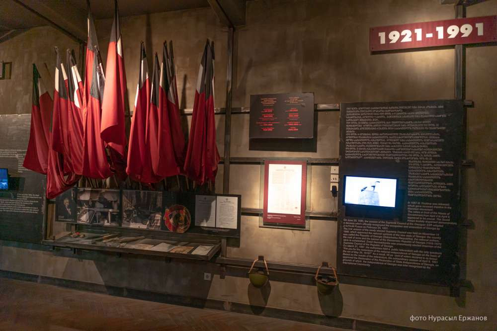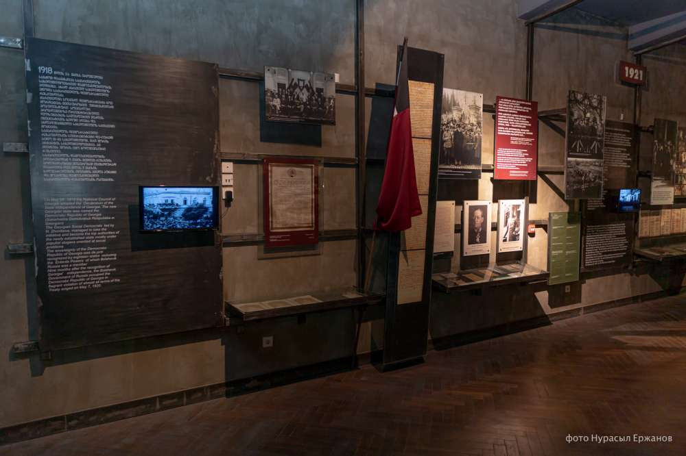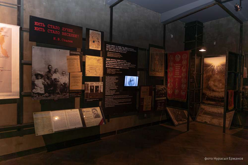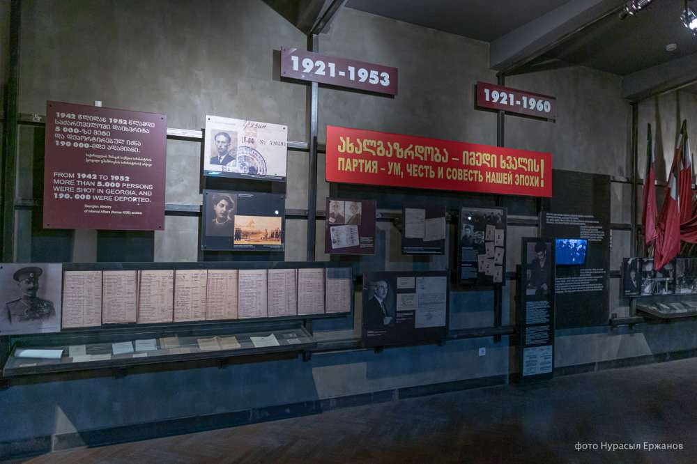 В музее представлены самые темные страницы советской истории — по всему залу висят списки многочисленных расстрелянных во время советских репрессий, оружия и приказы о расстрелах, рассказано и о судьбах тех, кто был в ГУЛАГе и кому удалось выжить. Есть материалы о коротком трехлетнем периоде независимости Грузии с 1918 по 1921 годы, а также о попытках местных патриотов ее сохранить.