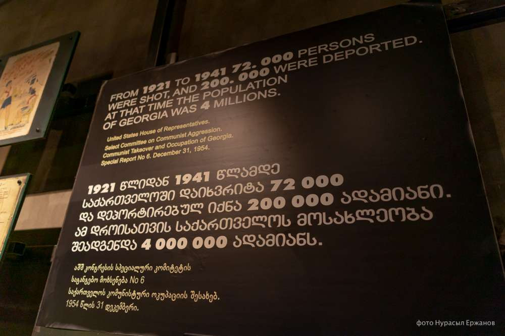 Корреспондент BaigeNews.kz побывала в Музее советской оккупации и увидела грузинский взгляд на советскую историю — критичный, совсем не нейтральный, с болью показывающий незажившие исторические травмы из-за загубленных судеб и отобранных территорий. Этот небольшой музей находится на четвертом этаже Национального музея Грузии, расположенного в самом центре столицы.
