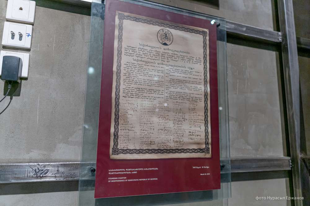 Далее можно увидеть Акт о независимости Грузии 1918 года, который переведен на французский, немецкий и английский языки. В нем представлены интересные пункты. В многонациональной Грузии национальные меньшинства смогли принимать такое же участие, как и грузины, в работе законодательных учредительных органах. Это же касалось и женщин. Таких женщин было пять, уточняет экскурсовод, троих из них впоследствии расстреляли в 1937 году.