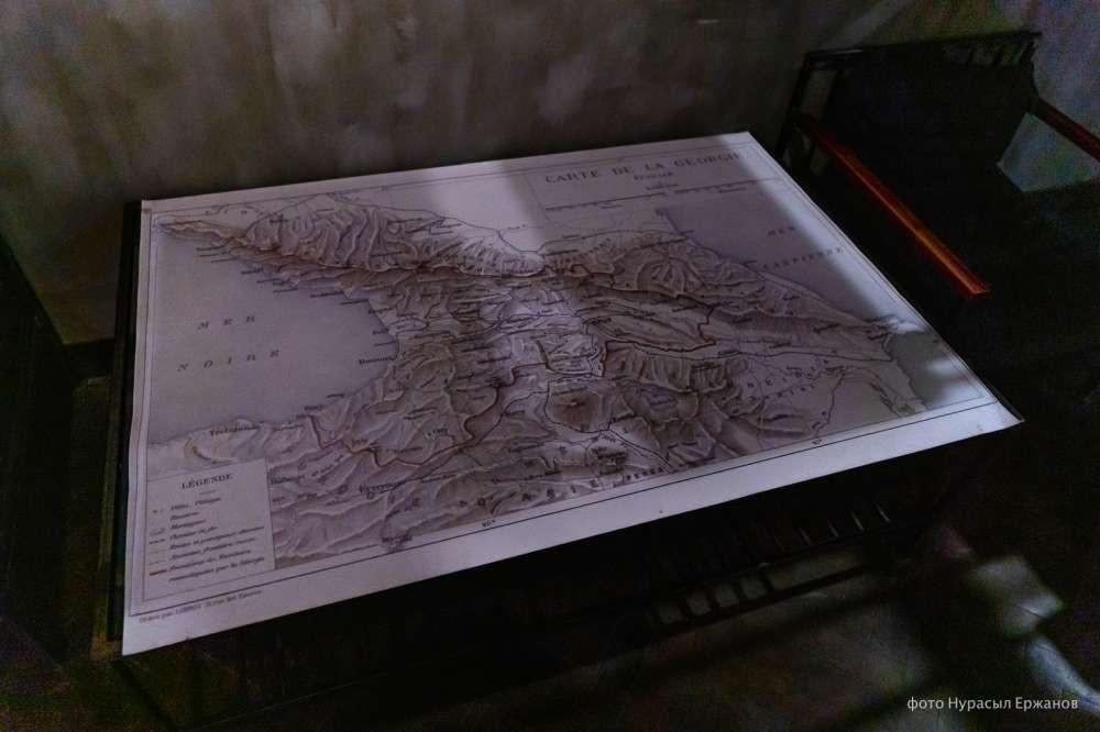 Следующий экспонат — карта начала XX века, которая показывает, какой тогда была Грузия территориально. В 1921 году, когда в Грузию пришли большевики, территория страны была уменьшена примерно на 19 тысяч квадратных километров, отмечает экскурсовод.