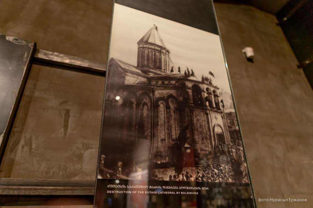 "Многие церкви были у нас тогда закрыты. Был создан союз безбожников. Около 1500 церквей было уничтожено. Здесь также представлен список расстрелянных священников. И в том числе здесь есть и митрополит Назарий. Такие кафедральные соборы (на снимке ниже — прим. ред.) стояли, при них были просветительные центры. Это все было подавлено", — рассказывает о ранних годах советской власти в Грузии экскурсовод.