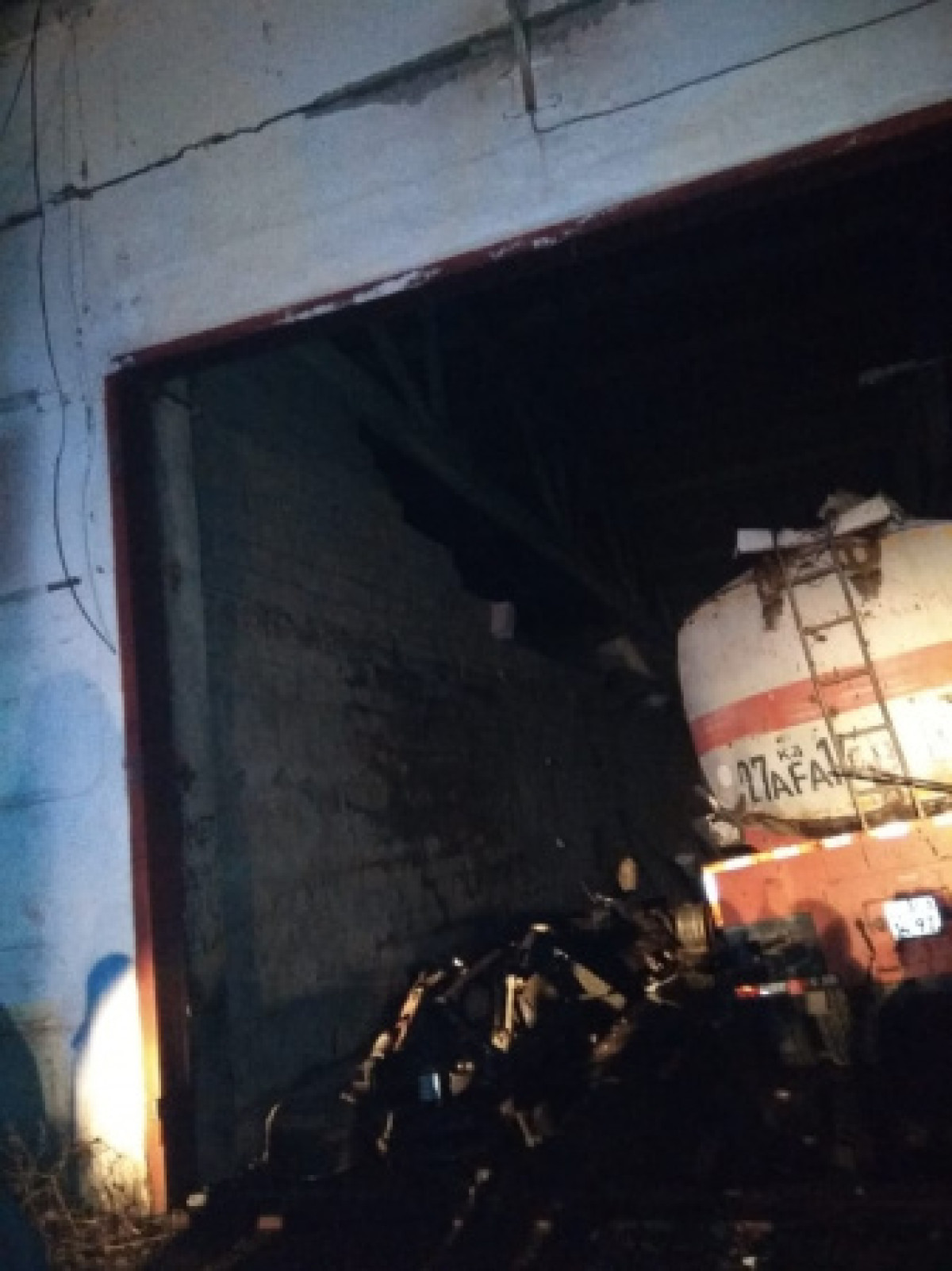 Сотрудники полиции оцепили территорию бокса. Цистерна оазалась пустой. Причина взрыва устанавливается.