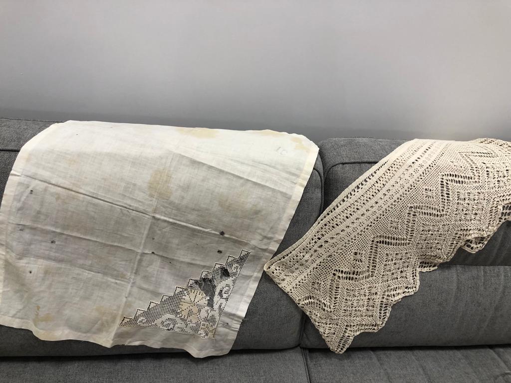 Кто-то из пленных подарил врачу три японские женские головки, они могли двигаться из стороны в сторону. Семья бережно хранит алюминиевую баночку из-под чая. А ещё салфетку из лагеря. Её связали медсёстры, чтобы украсить кровать в комнате.